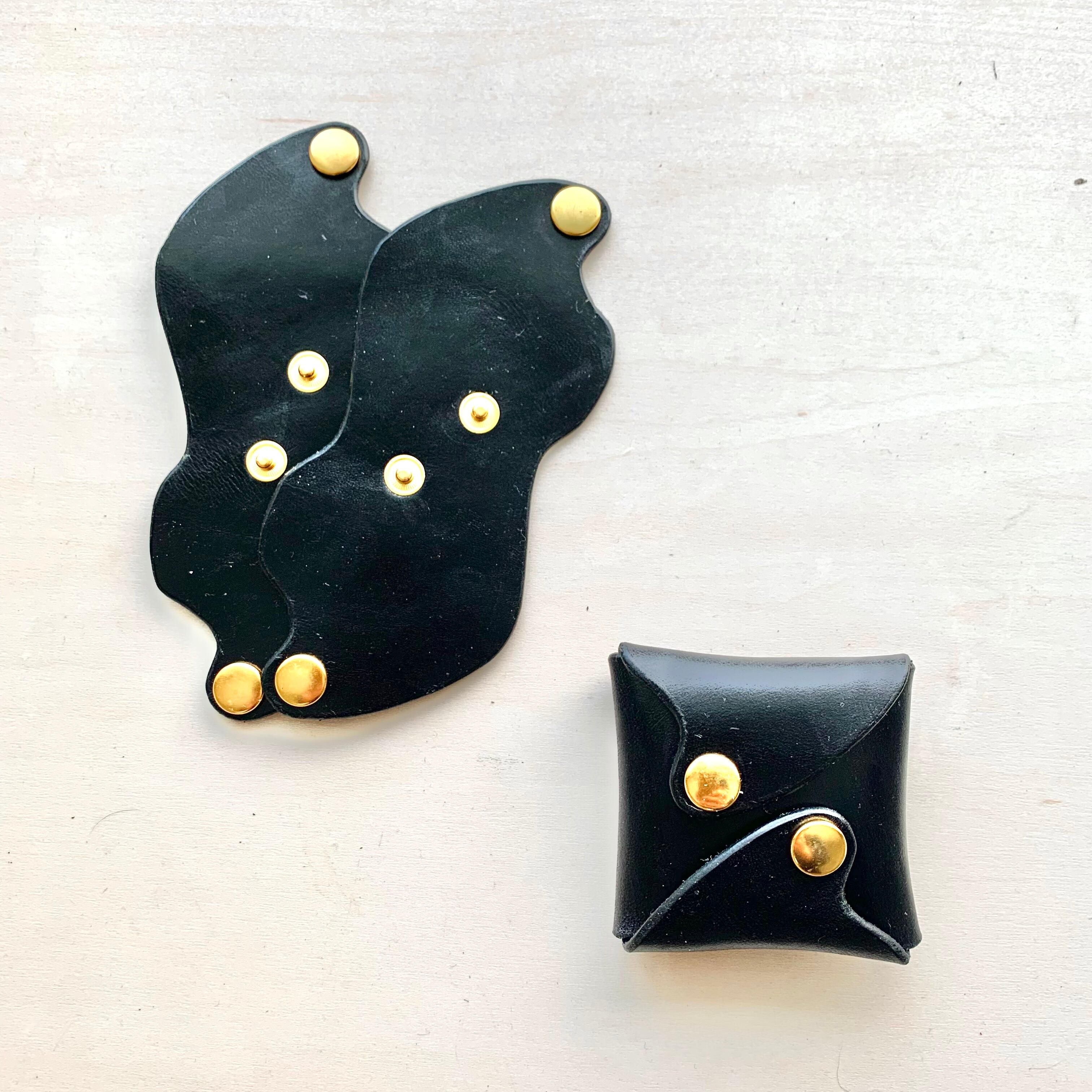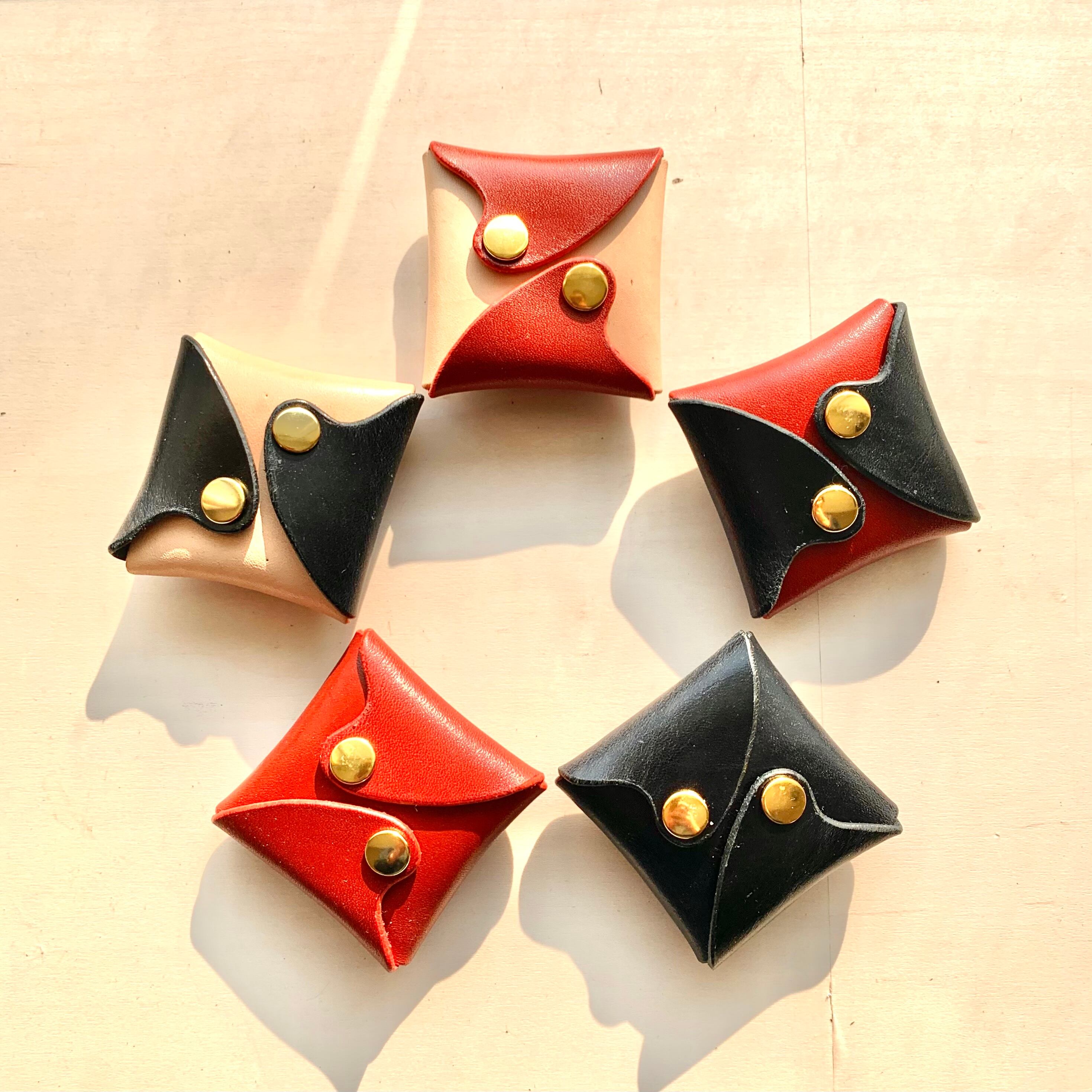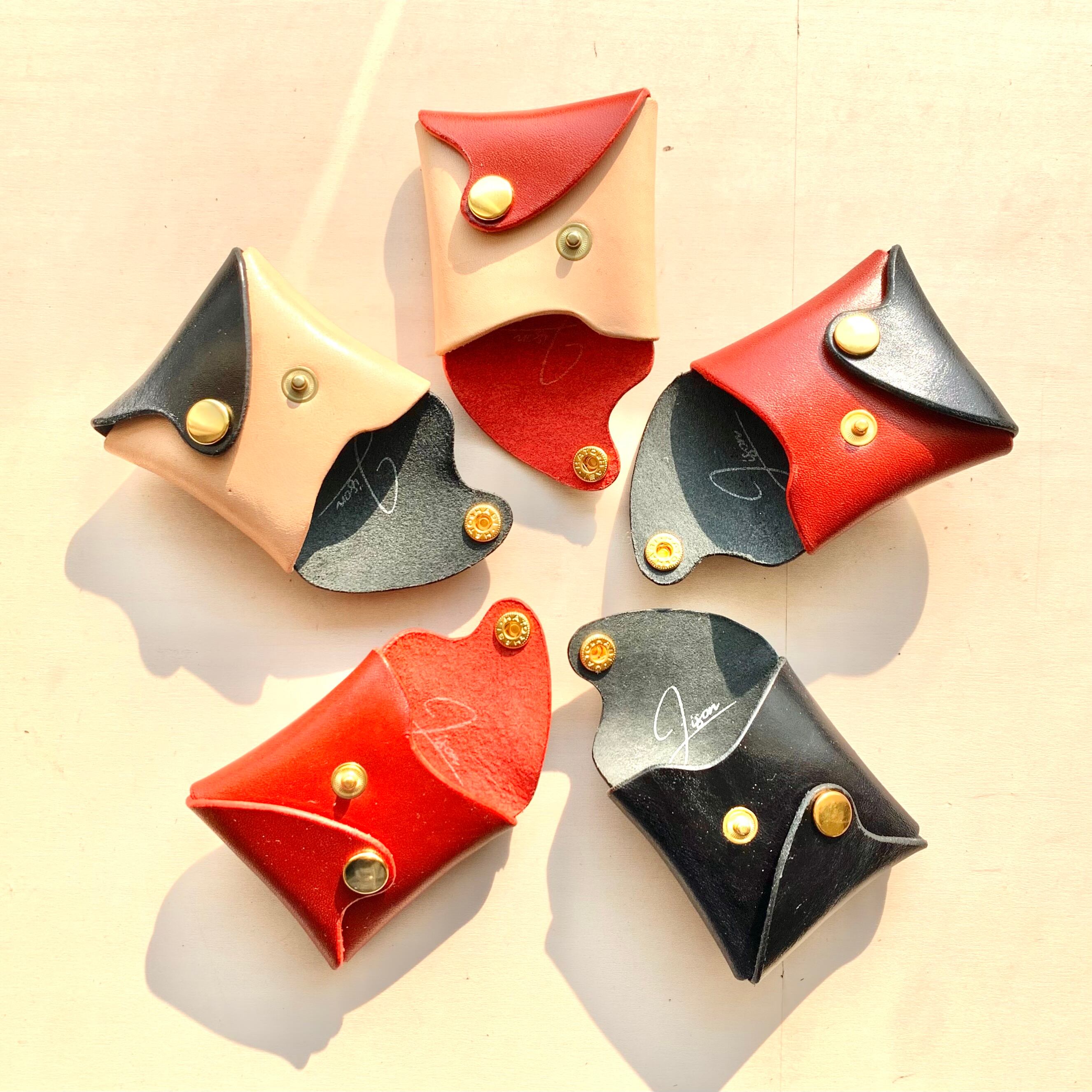 流線形の2つのパーツからなるこのコインケースは、波をイメージして作成しました。
