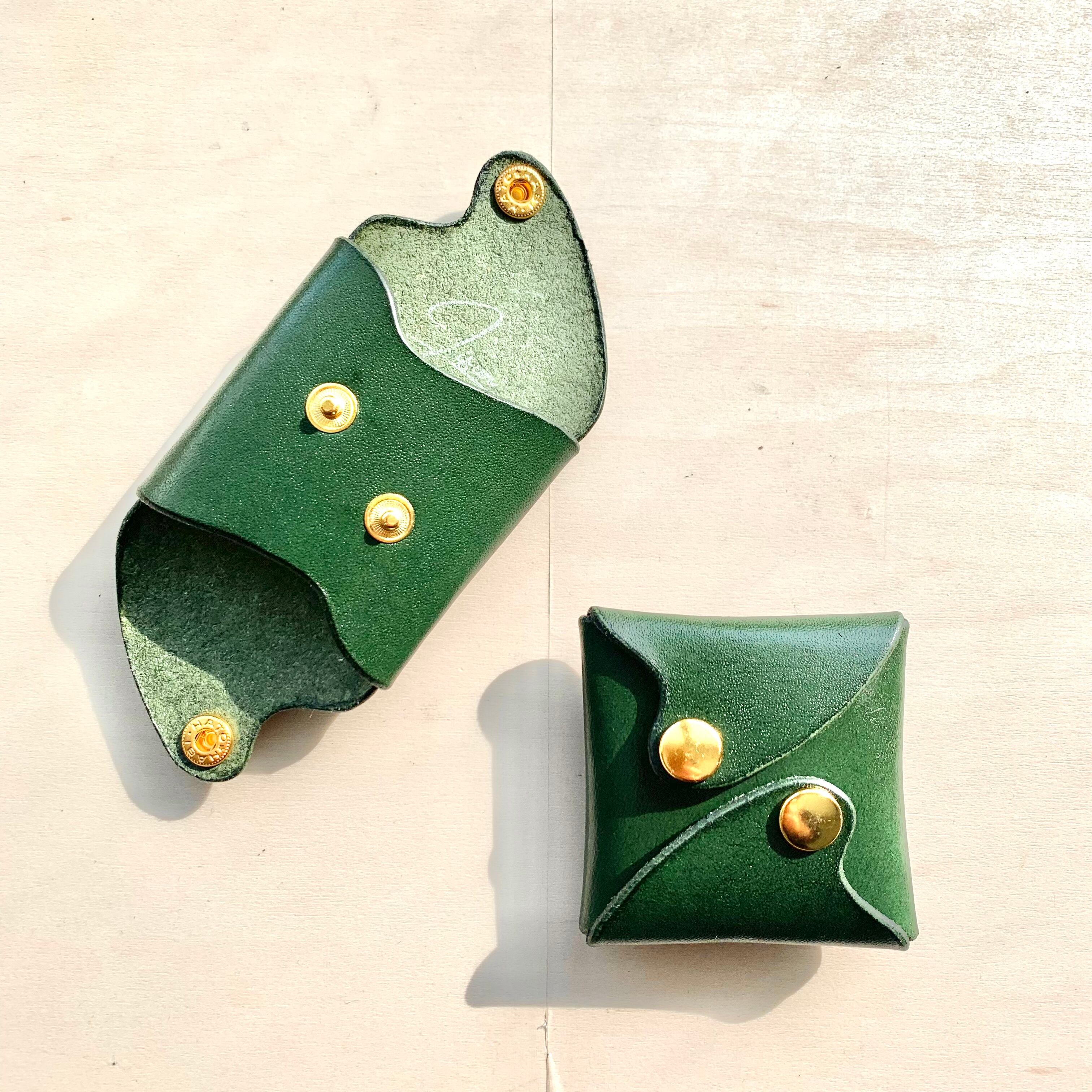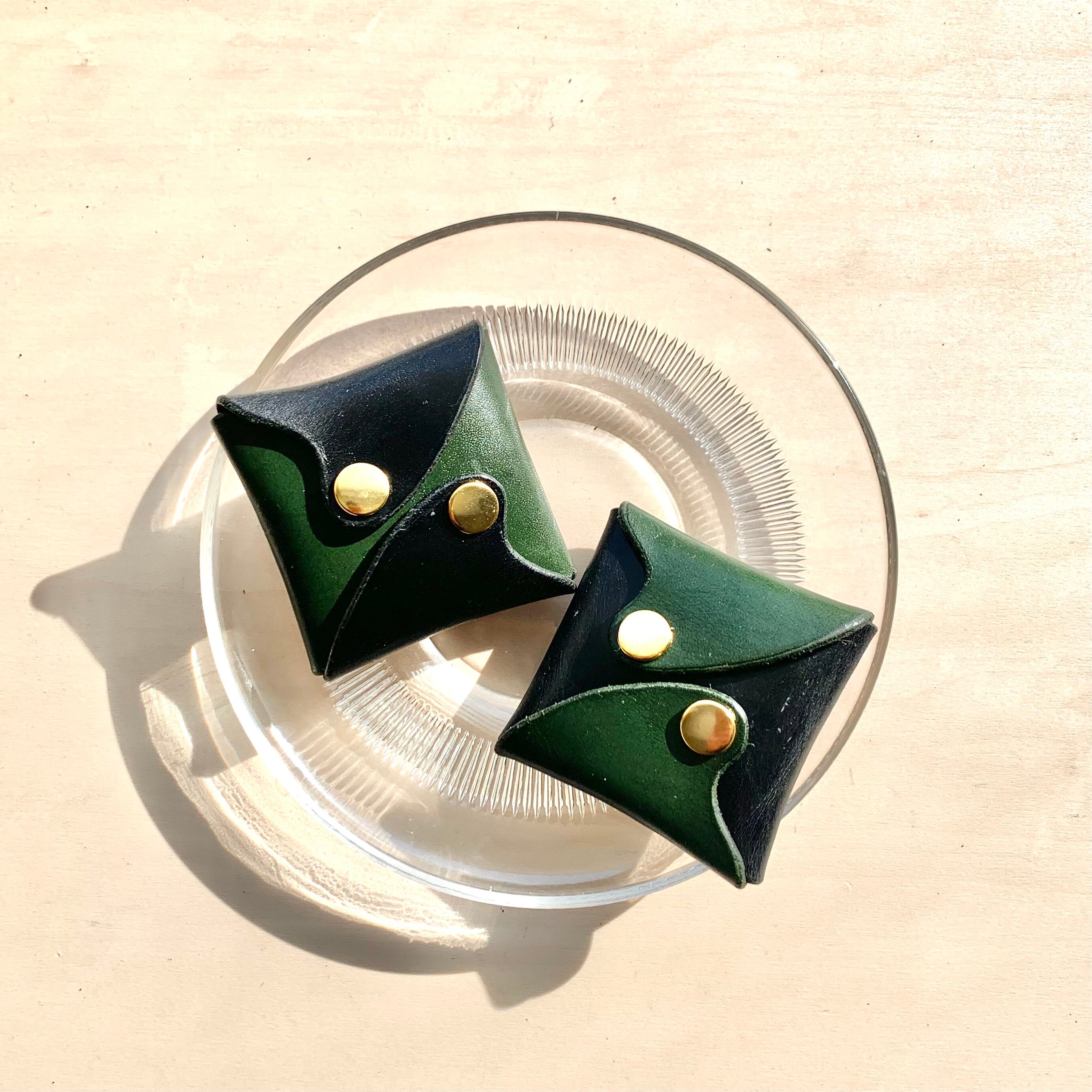 "波"シリーズ レザーコインケース / グリーン