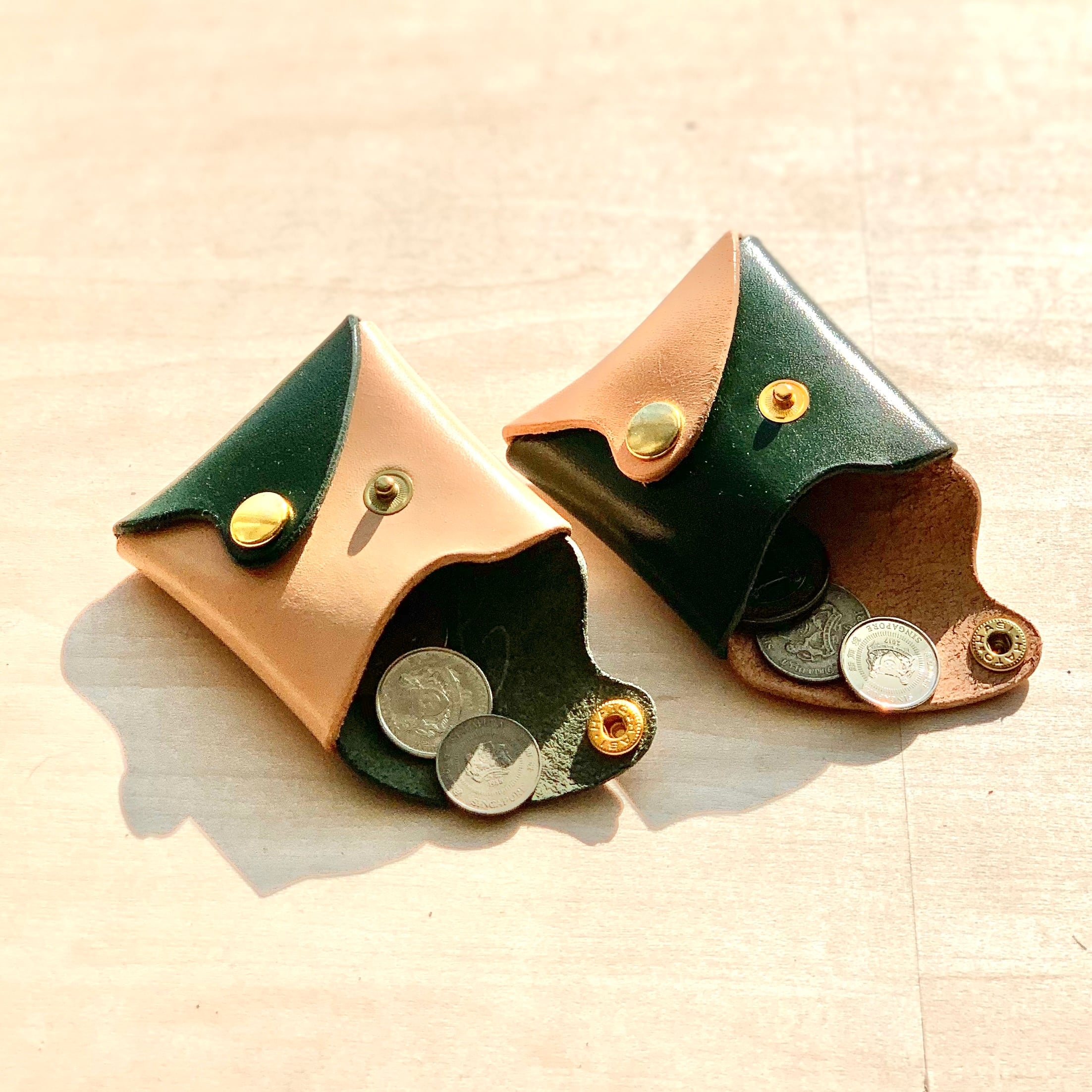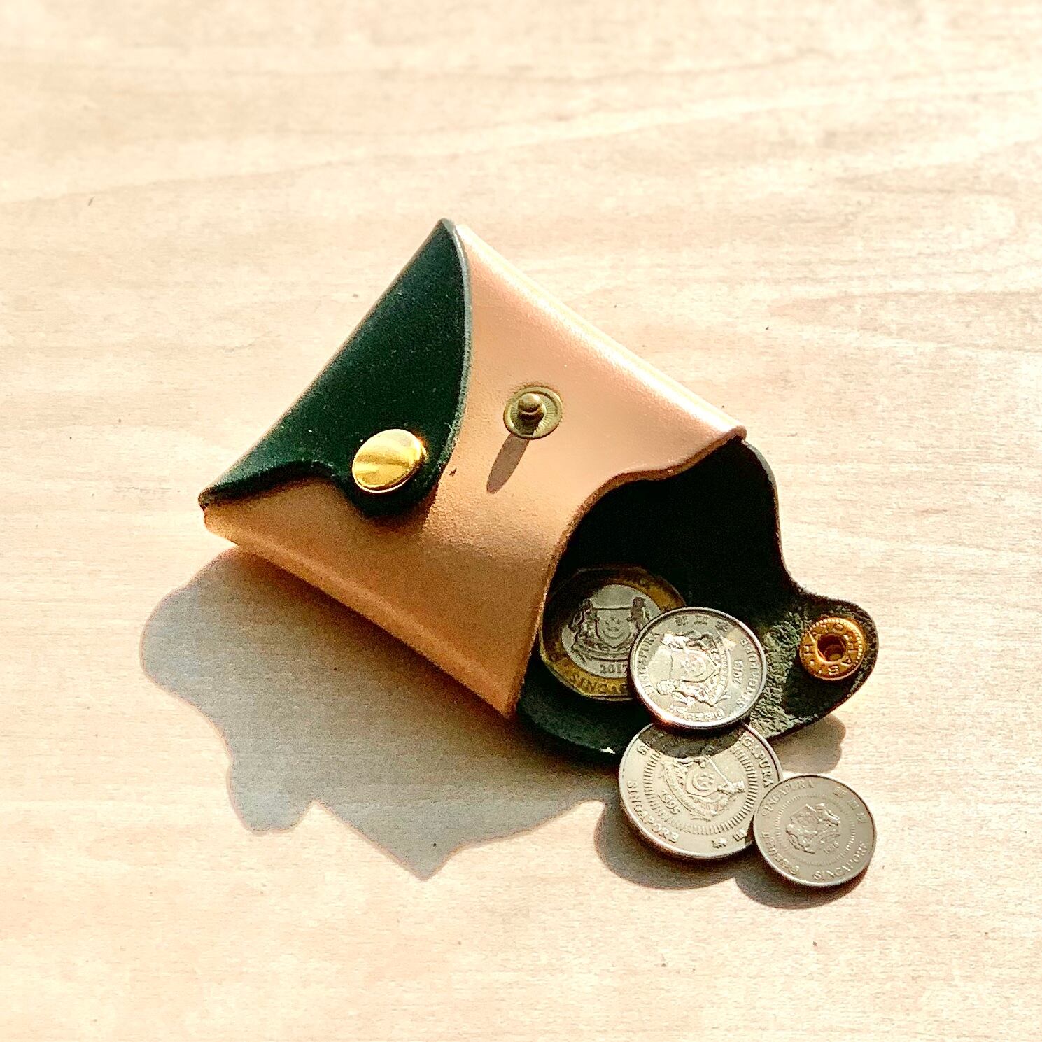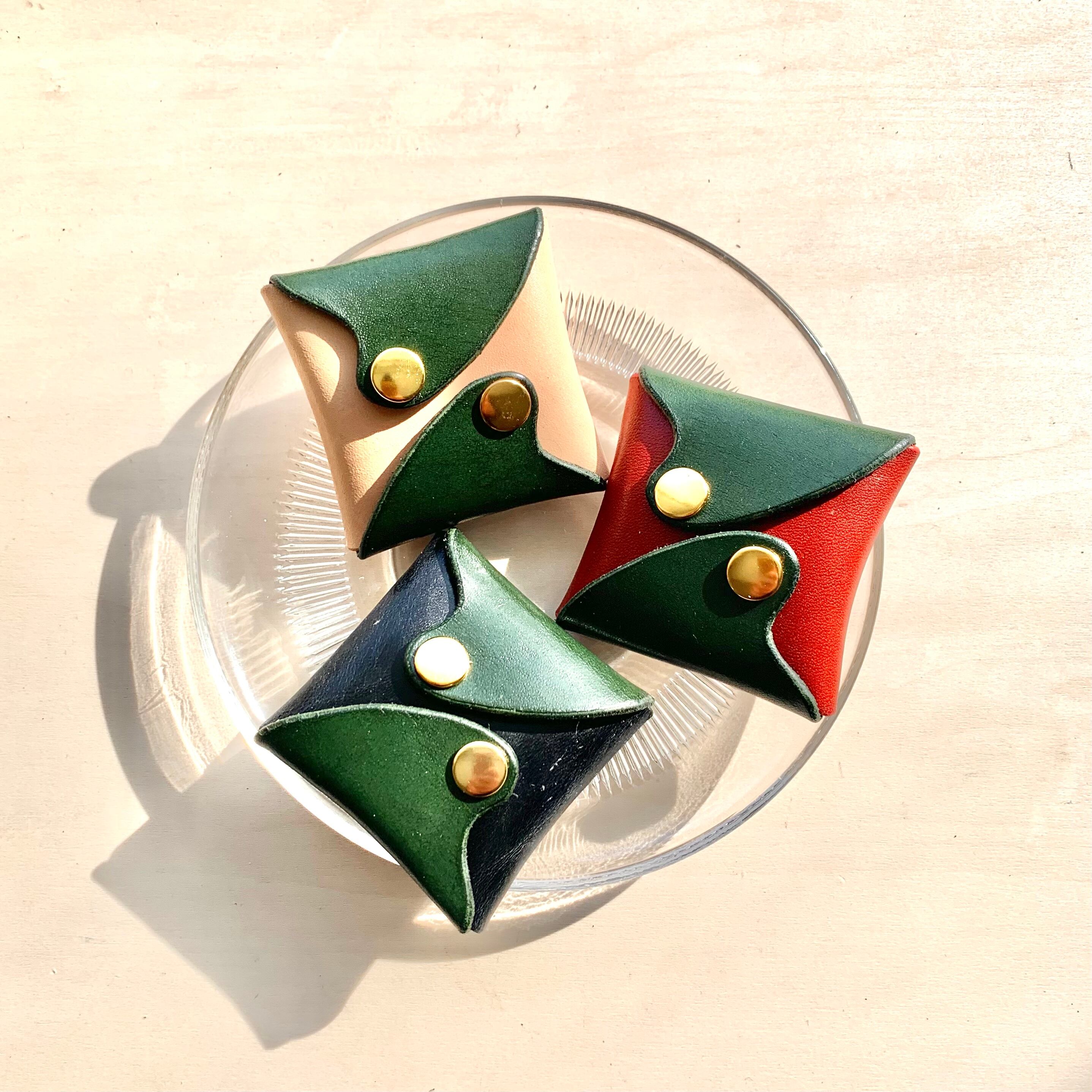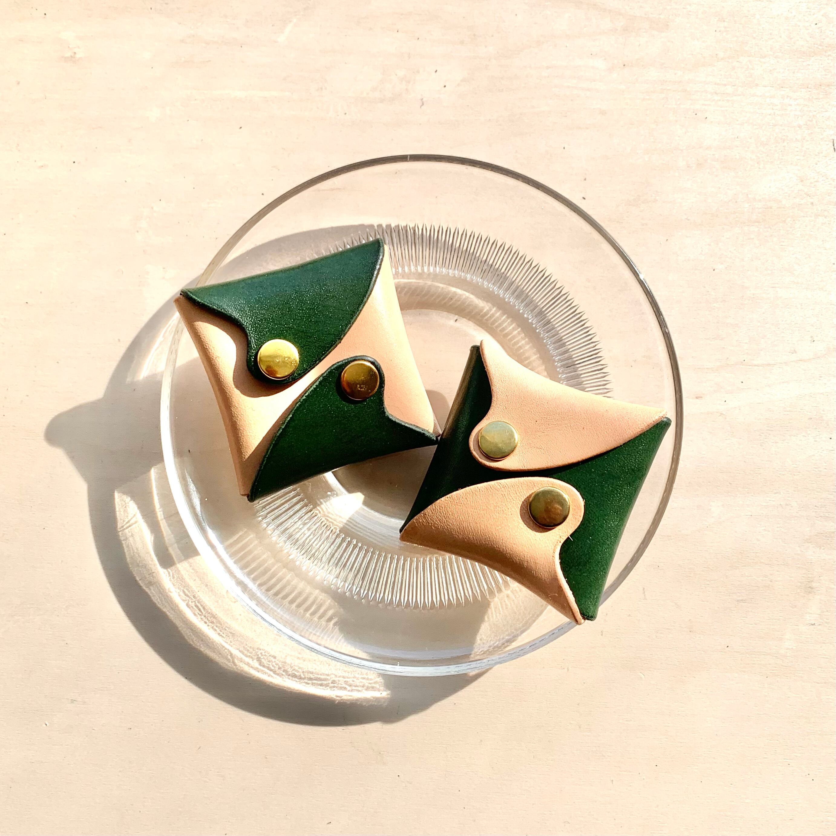 "波"シリーズ レザーコインケース / ナチュラル×グリーン