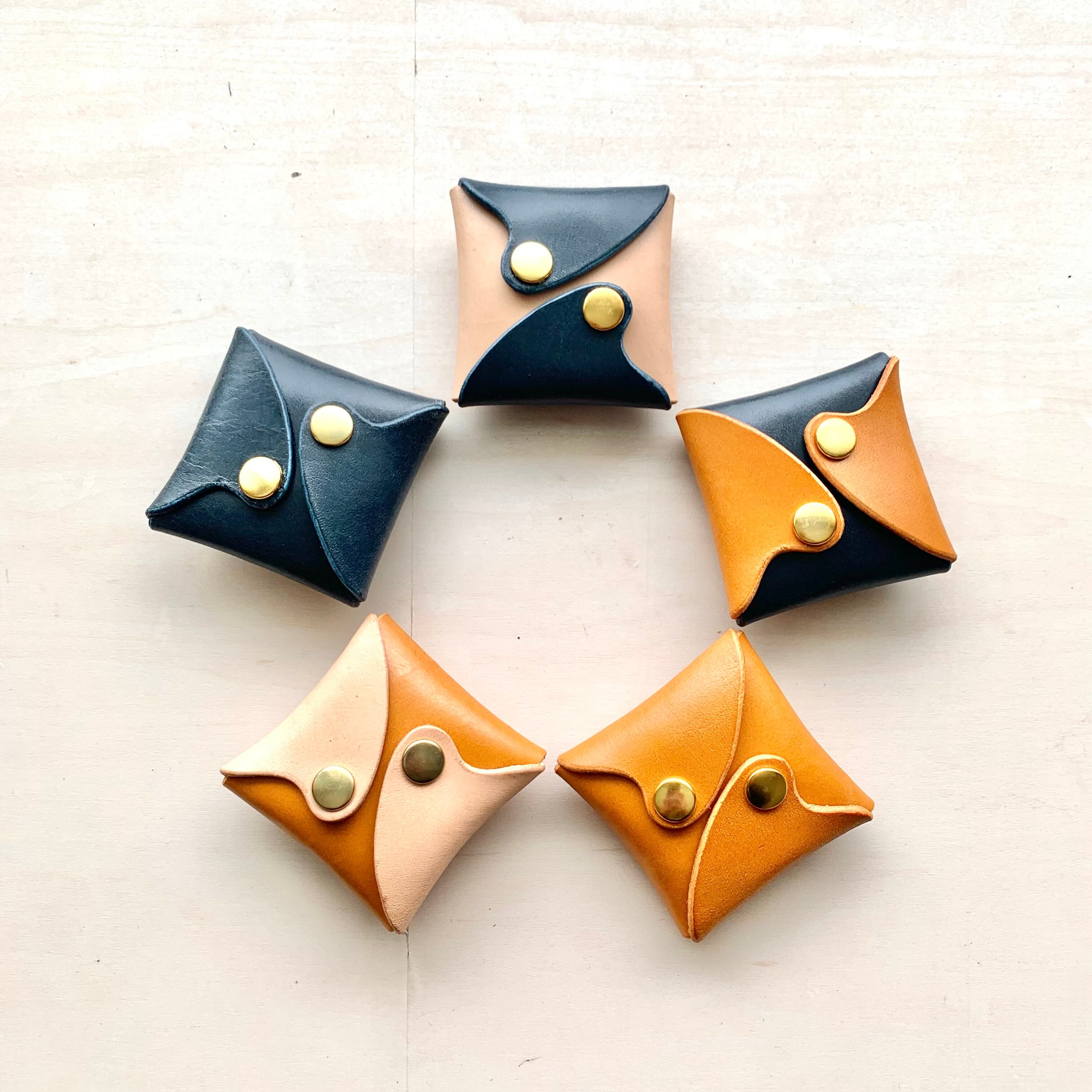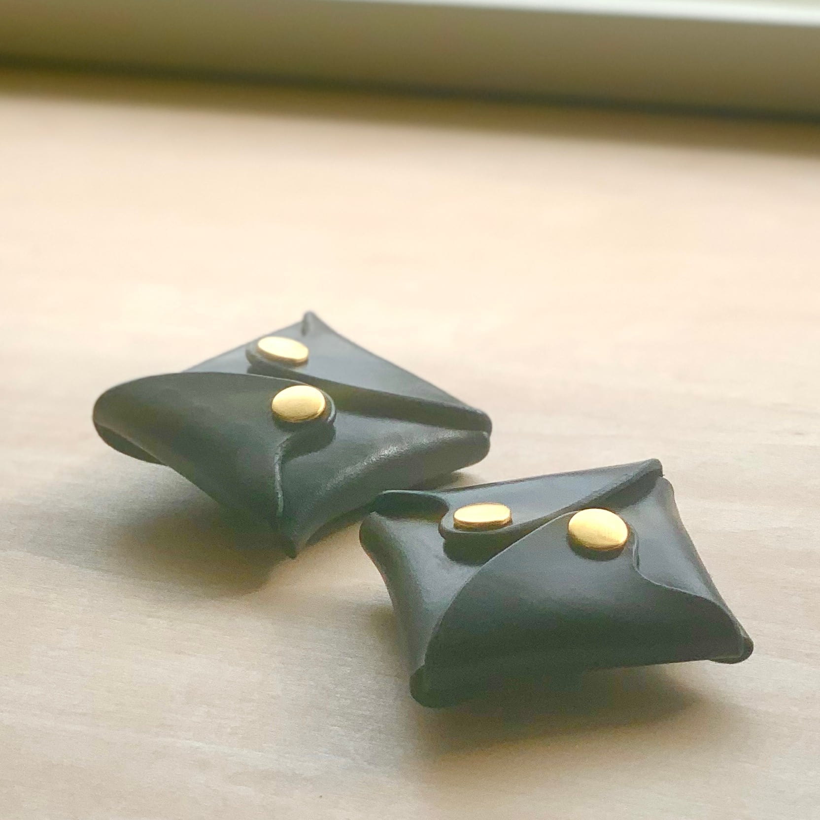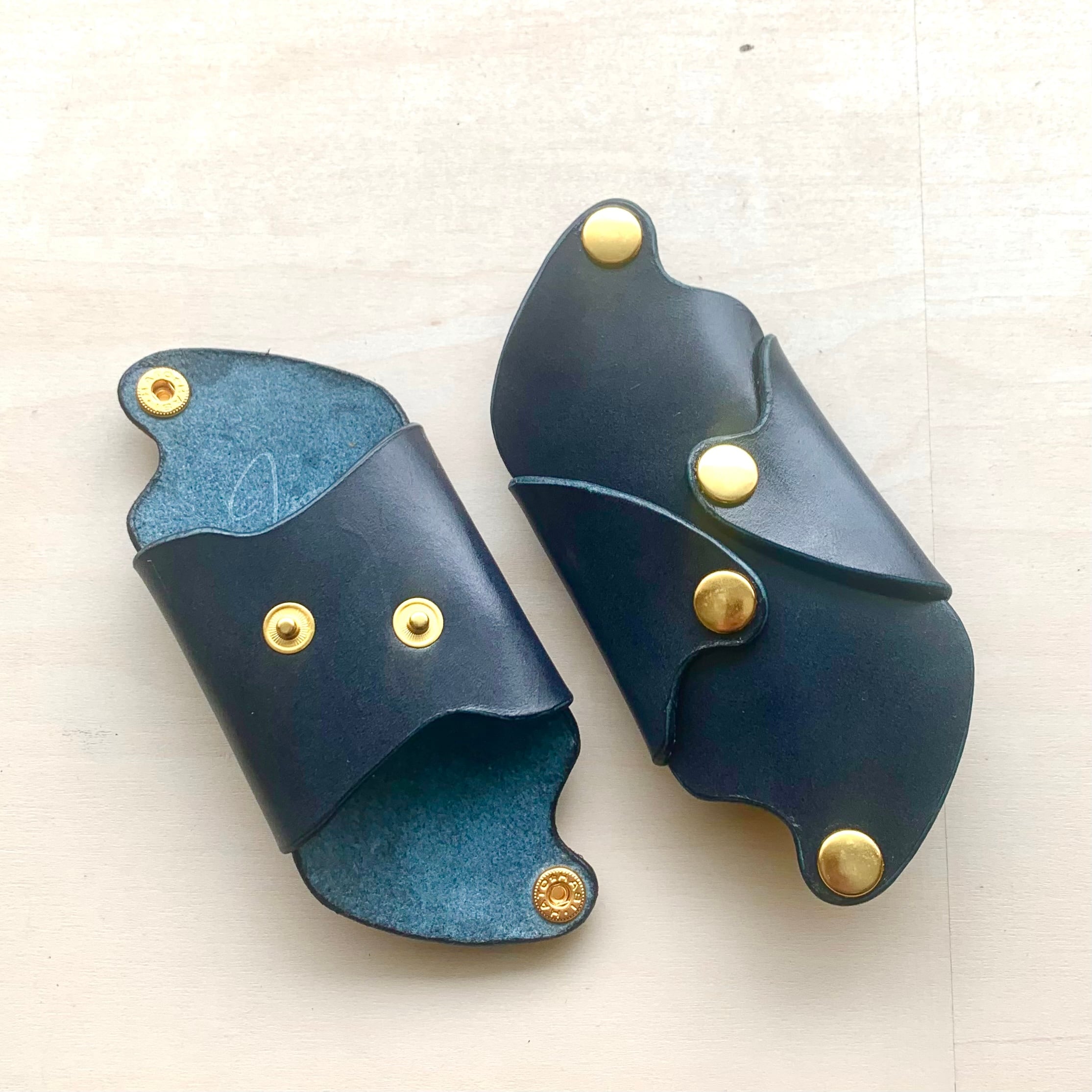 流線形の2つのパーツからなるこのコインケースは、波をイメージして作成しました。